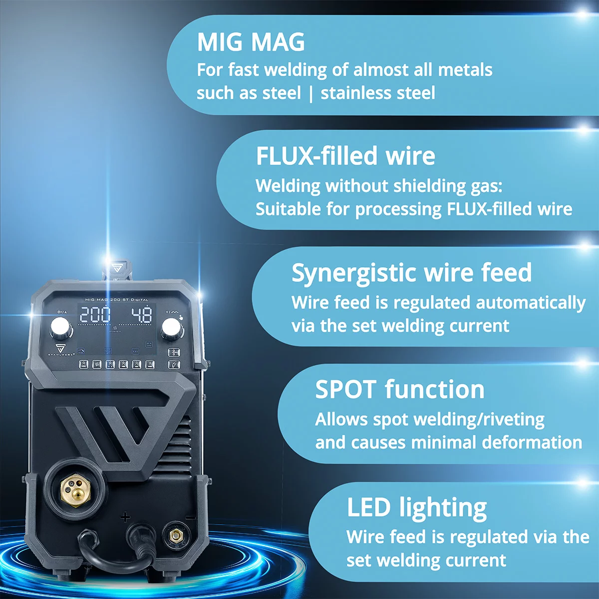 Features & advantages of the Stahlwerk Mig Mag 200 ST Digital Mig Welder: