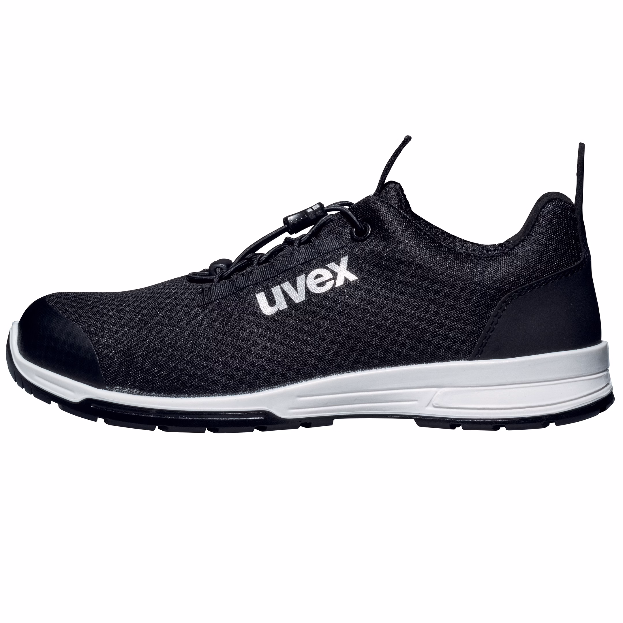 The Uvex 1 trainer is an ultra-light, flexible and highly breathable safety trainer, allowing you to move effortlessly through your day. The mesh lining allows feet to breathe and the soft padded tongue and collar enhance comfort. Keep pace with your active lifestyle both on and off the job with the uvex 1 trainer.